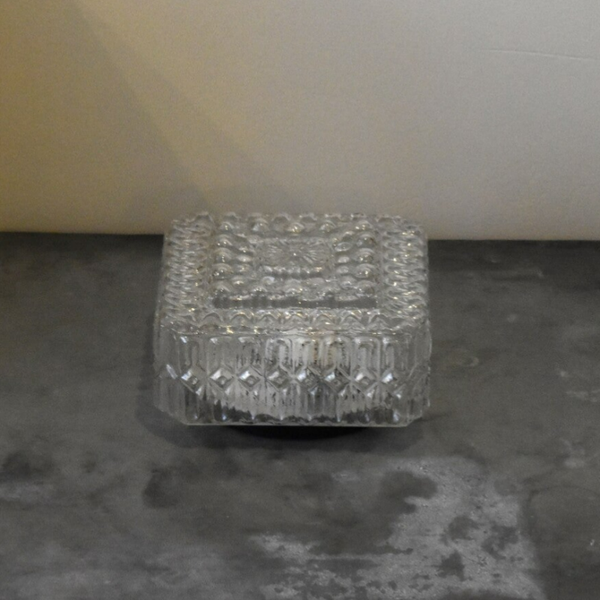Mooie vintage vierkante plafonniere met helder glas waardoor het licht mooi in de kamer schijnt