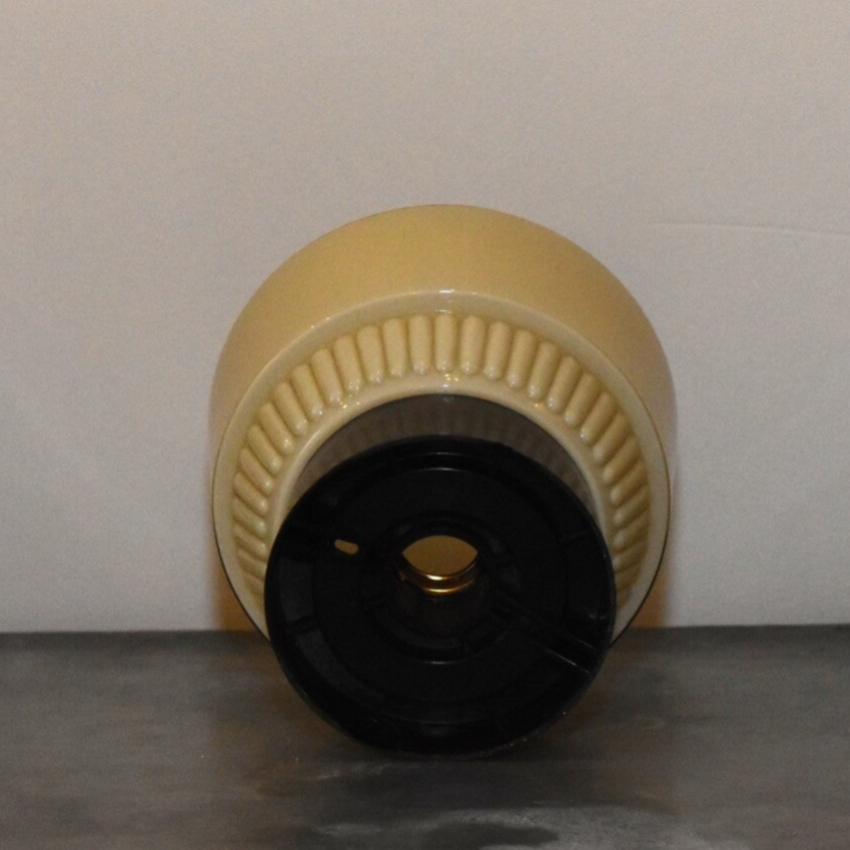 Prachtige Thabur plafondlamp uit de jaren 30. In art deco stijl en een zacht geel, bruine kleur.