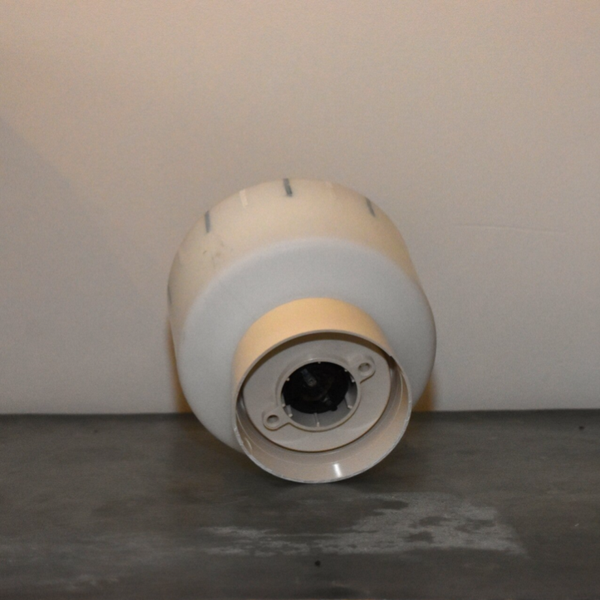 Jaren 60 plafondlampje van wit opaalglas met Grijs Witte strepen
